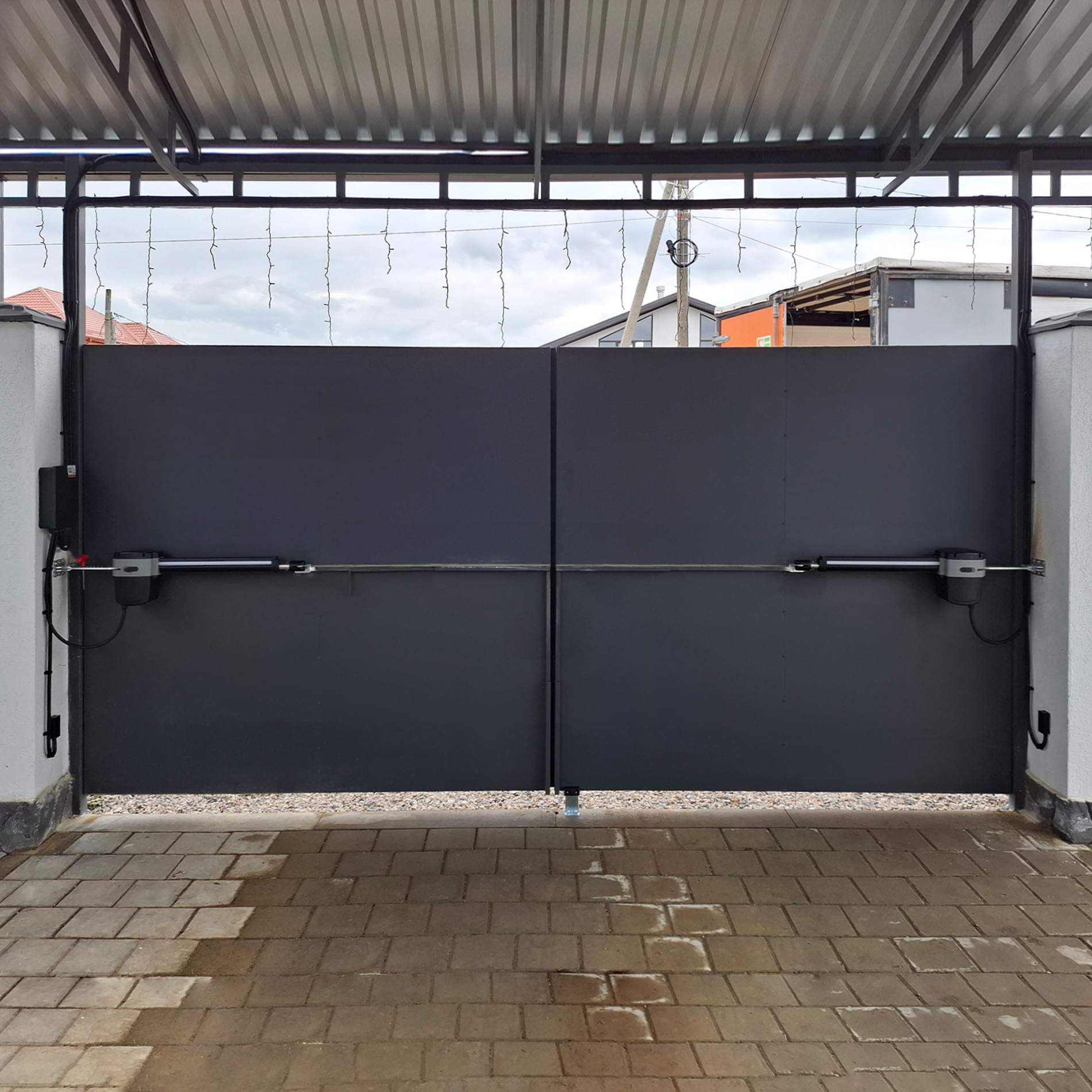 Да, в случаях, когда снаружи участка недостаточно места для открытия ворот, мы можем установить их таким образом, чтобы створки открывались вовнутрь.