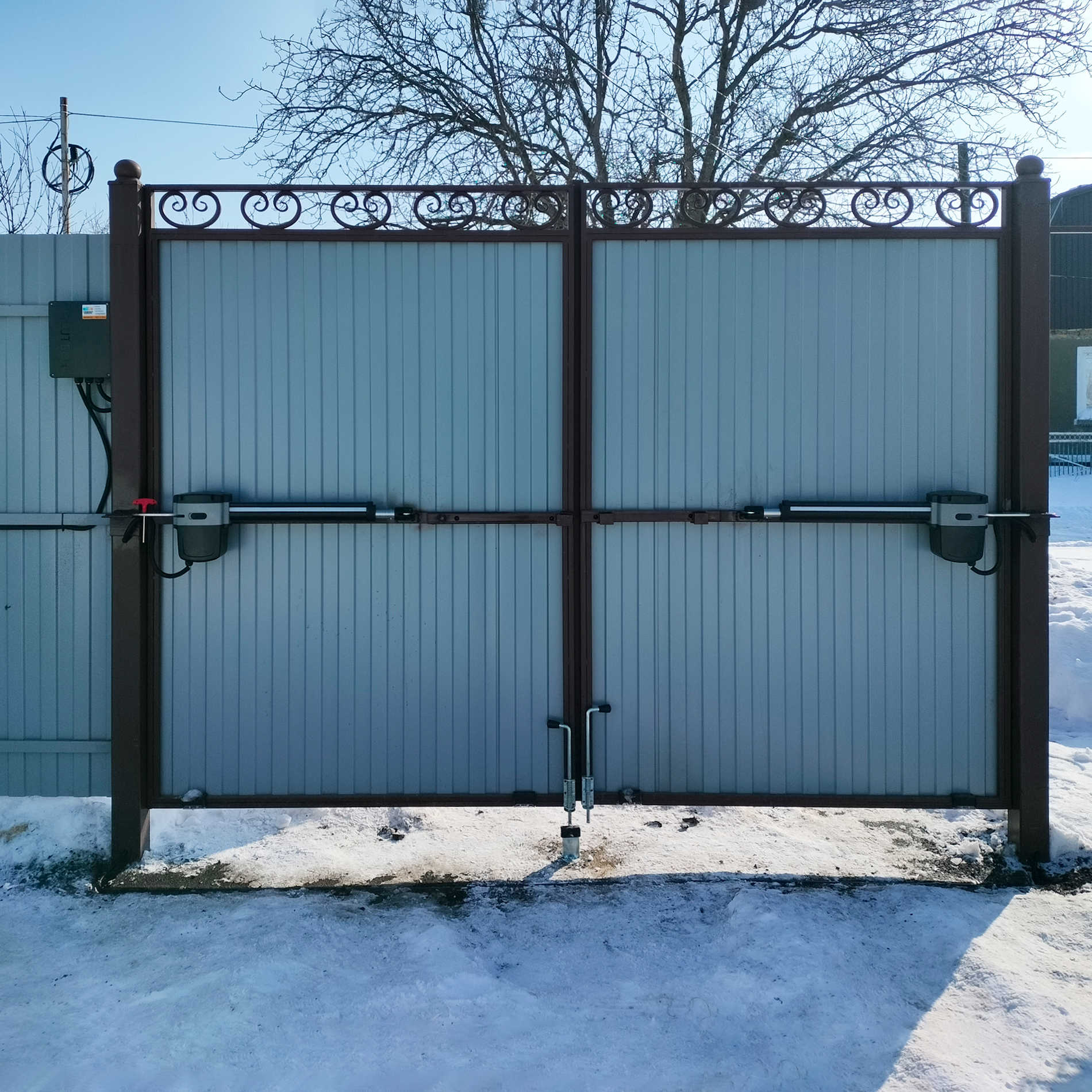 Распашные ворота дешевле, они быстрее устанавливаются и не требуют ровного участка. Но они подвержены влиянию неблагоприятных погодных условий, требуют большого пространства перед воротами и его регулярной очистки для беспрепятственной работы.