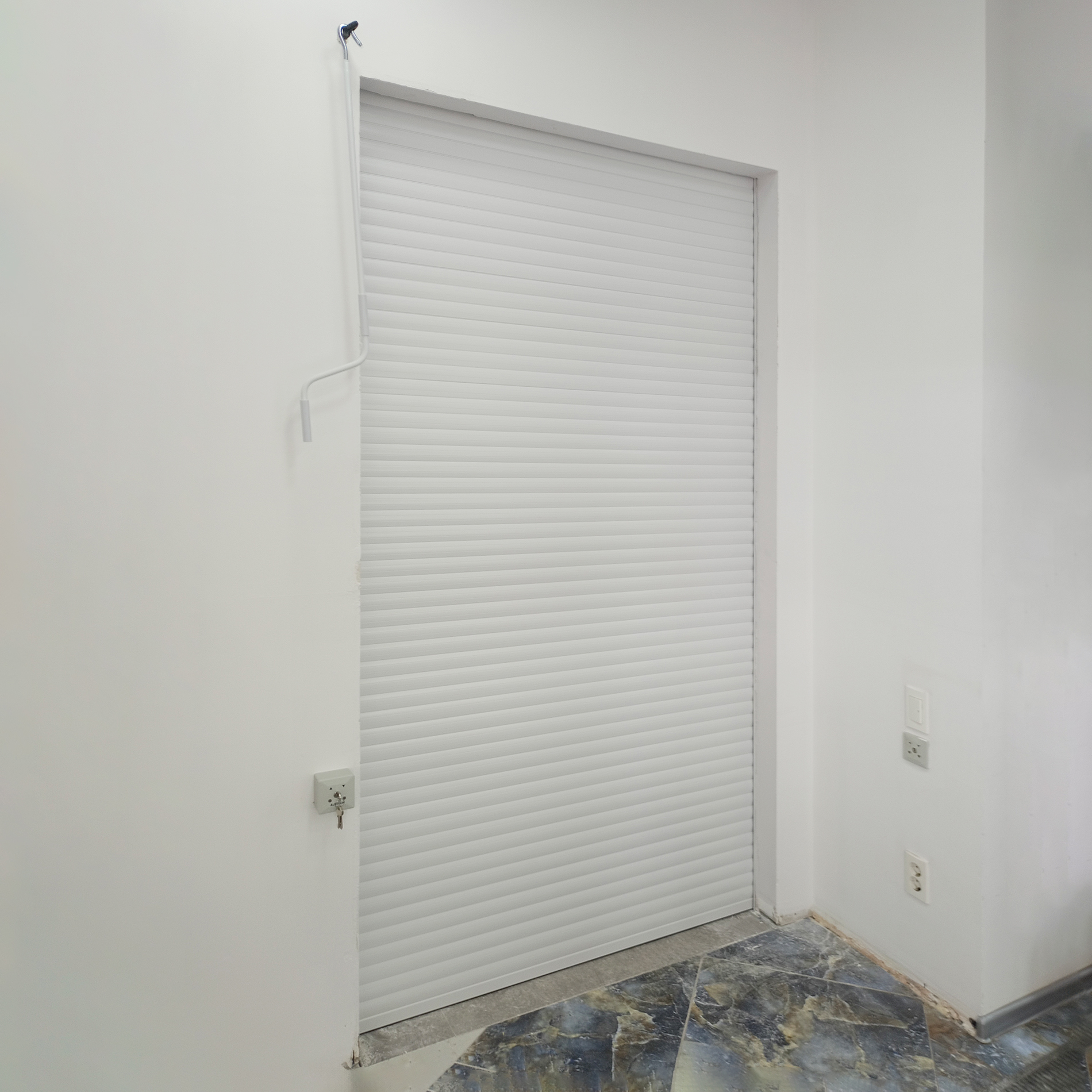 Очищайте полотно роллетных ворот от наледи в зимний период путем легких ударов мягким предметом с внешней и внутренней стороны.
