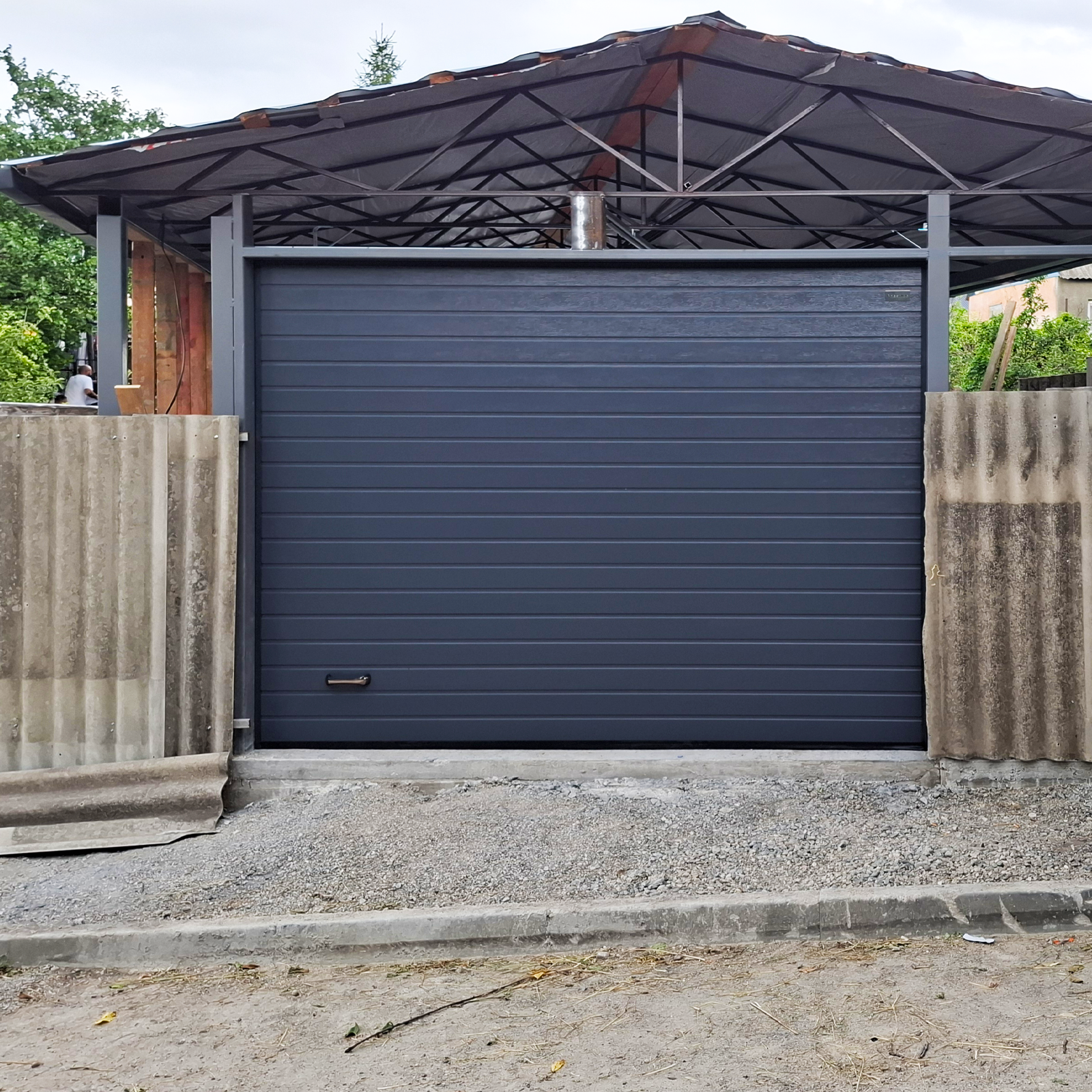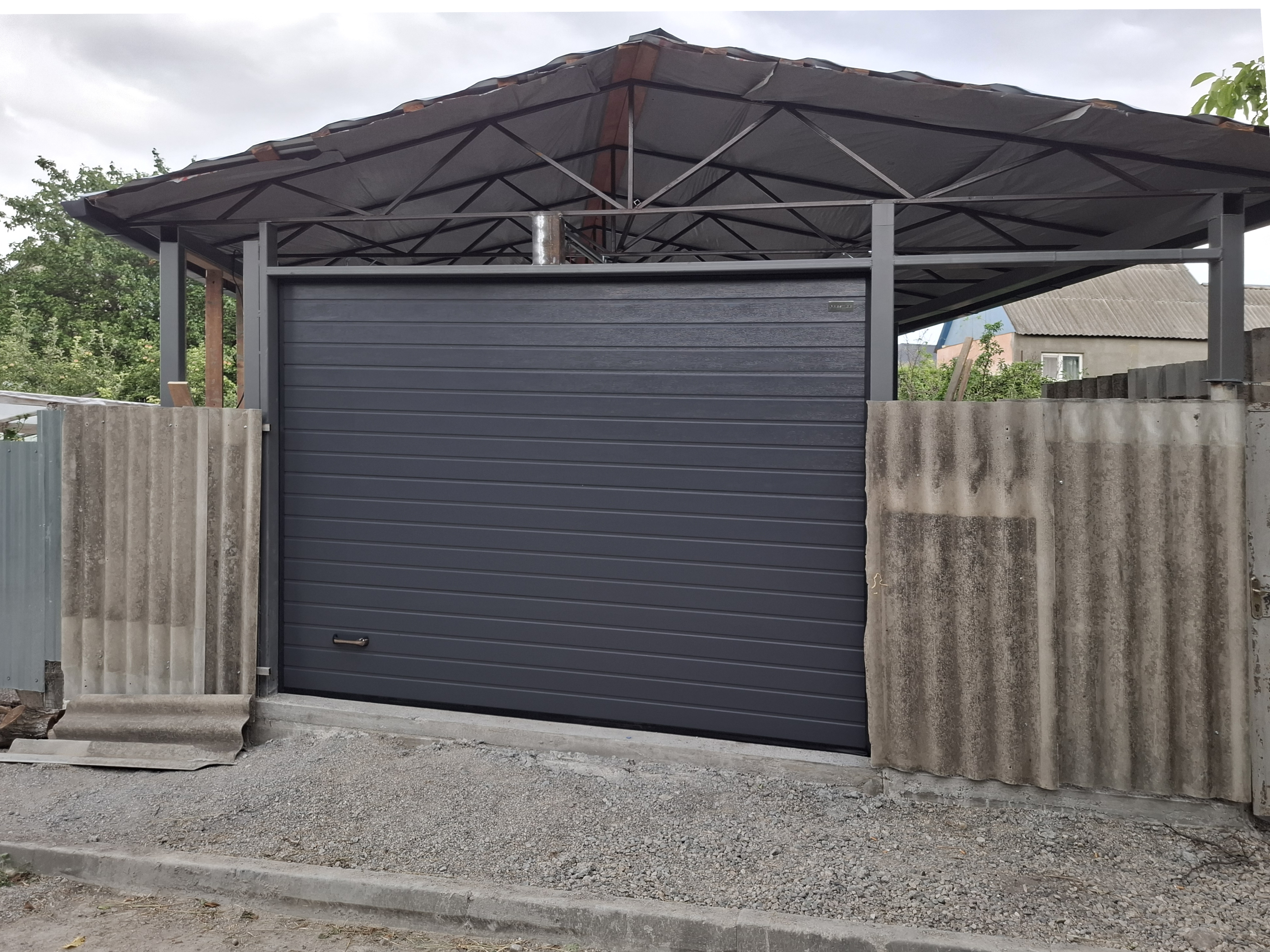 В условиях дождливого климата мы рекомендуем использовать панорамные ворота со вставками из сэндвич-панелей, так как этот вариант будет наиболее практичным и сохранит свою визуальную привлекательность.
